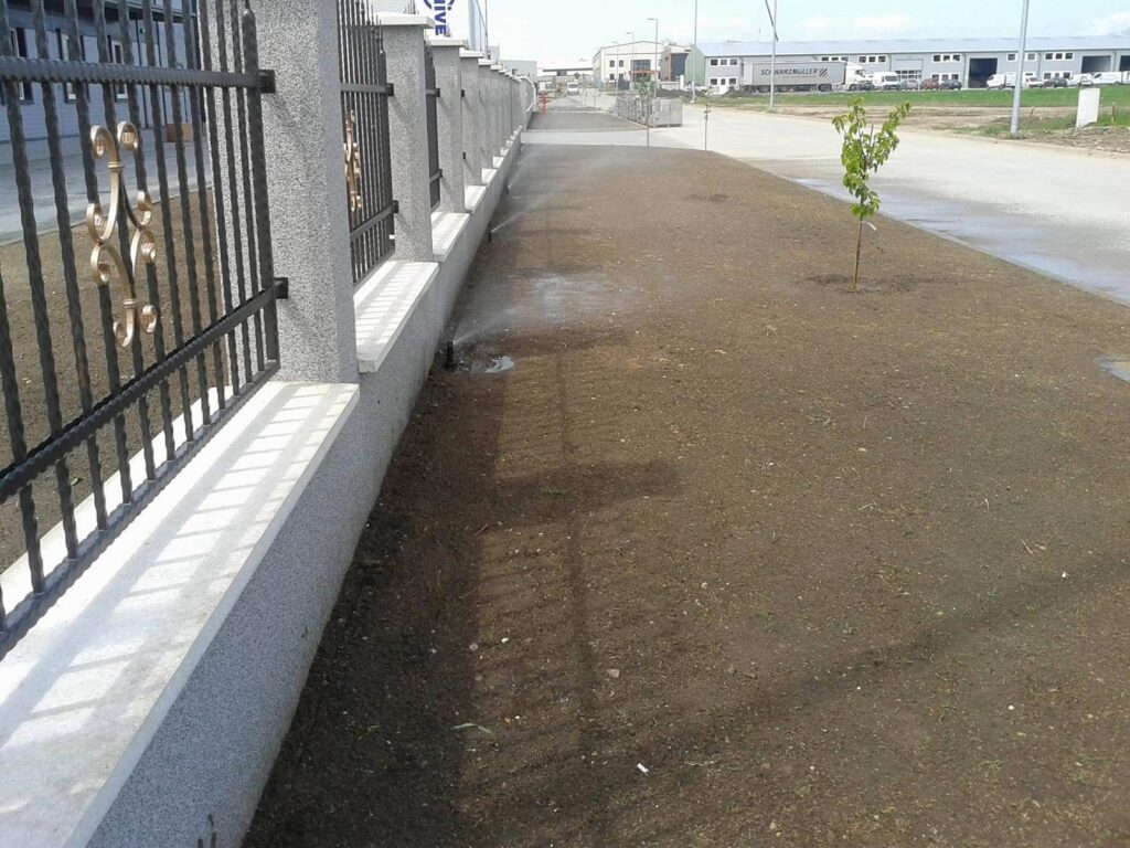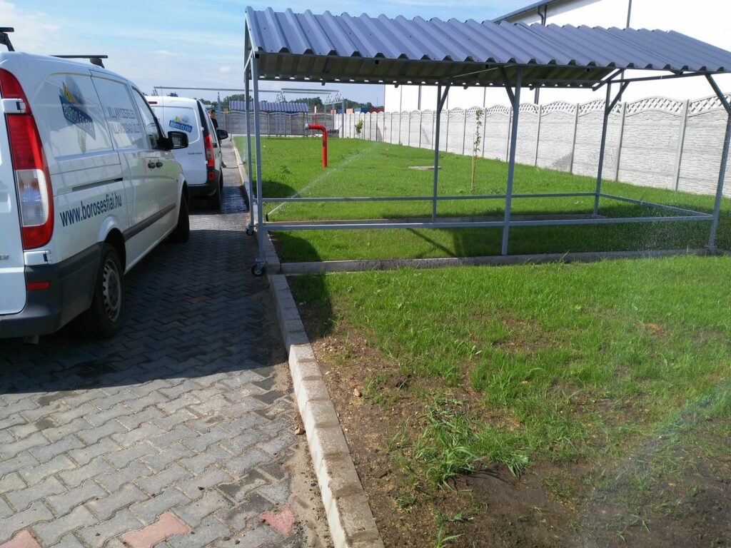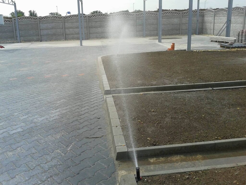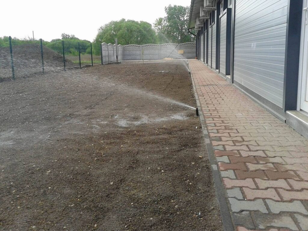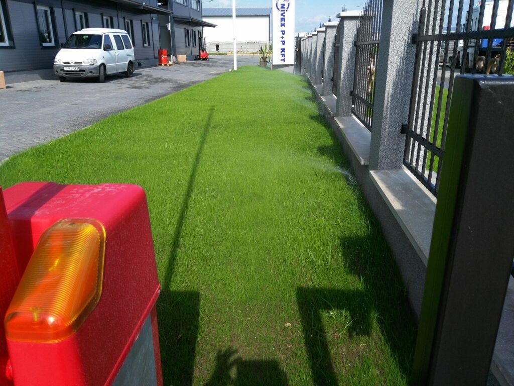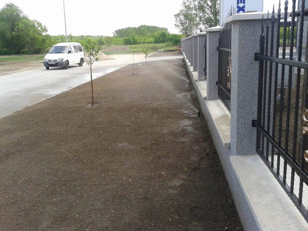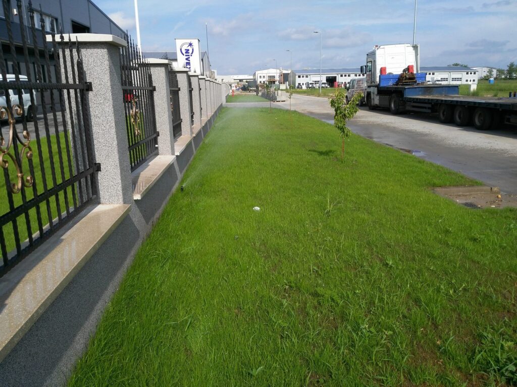 Ebben, a megközelítőleg 3000 m2-es ipari parkban is elengedhetetlenül szükséges volt az automata öntözőrendszer beépítése ahhoz, hogy a kötelező zöldfelület létrehzás ne csak egy múlékony díszlet legyen, hanem valóban hosszú távon szolgálja a gyep és a növények öntözését és minimalizálja a kosz és por jelenlétét. K-Rain és Orbit öntözéstechnikai márkákat használtunk a megépítésnél, amihez esőérzékelőt is csatlakoztattunk a felesleges vízfogyasztás elkerülése véhgett. Ezzel is csökkentve a vízfogyasztást. A munka elvégzése 5 napott vett igénybe.